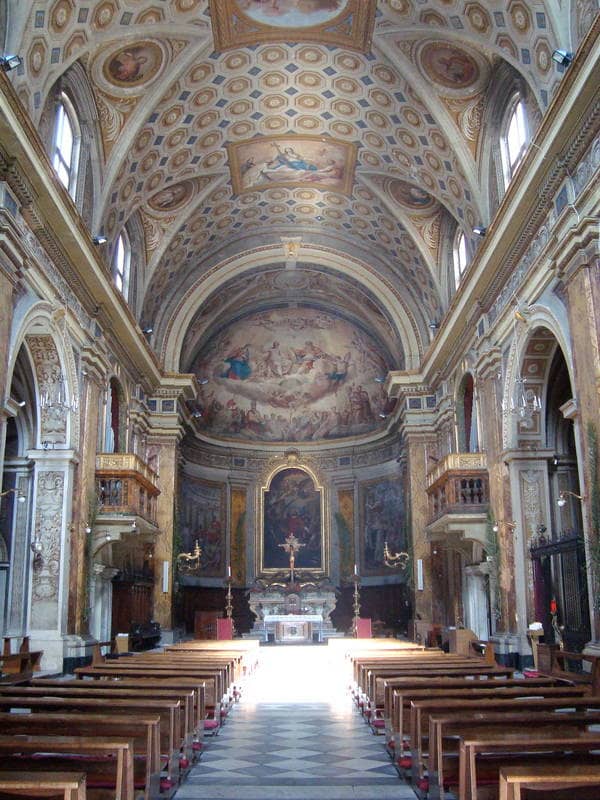 Das Kircheninnere mit seinen drei Schiffen weist nur auf der linken Seite Seitenkapellen auf; das Mittelschiff besitzt noch immer den wunderschönen Cosmatenfußboden aus dem 13. Jahrhundert. Bemerkenswert im rechten Seitenschiff ist ein Holzkruzifix, das Baccio da Montelupo (1469 - 1523) zugeschrieben wird; im linken Seitenschiff befindet sich die Kapelle San Francesco mit Fresken, die den Brüdern Zuccari (Mitte des 16. Jahrhunderts) zugeschrieben werden.