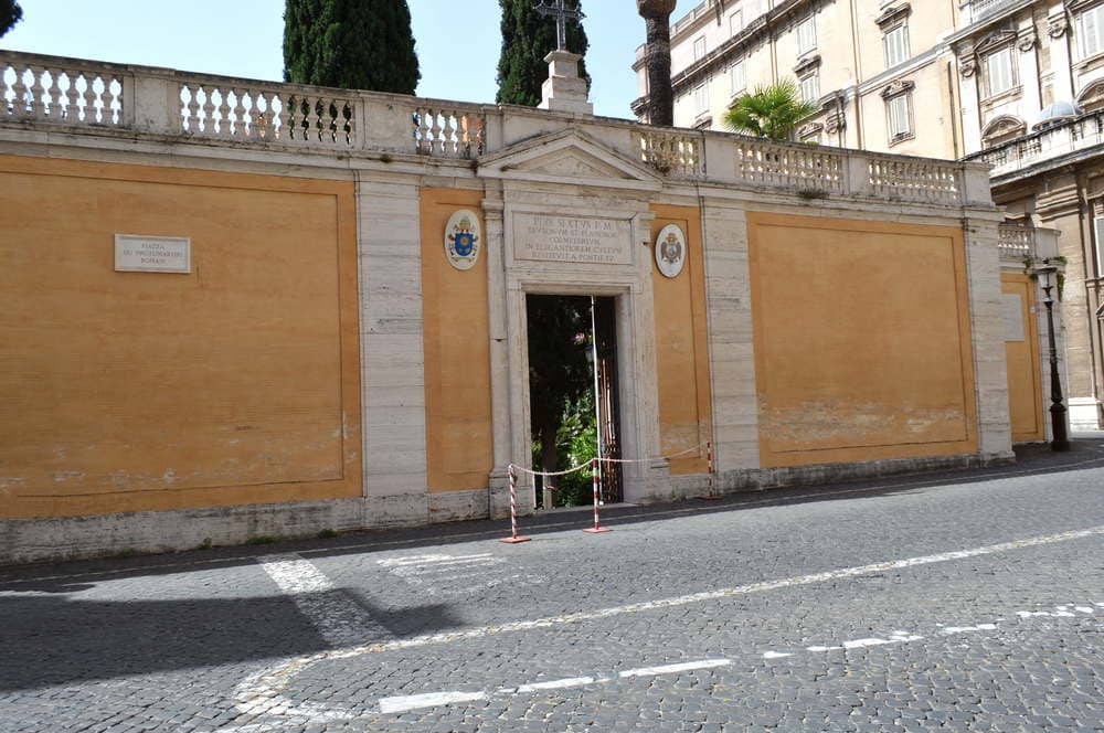 Der Zugang erfolgt nur über die Vatikanstadt und zwar der seitliche Eingang zwischen dem Palazzo Sant´Ufficio und den Kolonnaden.