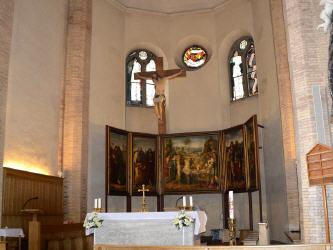Das Kirchengebäude liegt in der Nähe der Vatikanstadt, grenzt an das Collegio Teutonico und den Deutschen Friedhof in der Vatikanstadt. Das Gelände gehörte zur Schola Francorum, einem Hospiz für deutsche Pilger, der ältesten deutschen Einrichtung in Rom. Die Kirche an der Piazza Protomartiri Romani befindet sich im Bereich des Palazzo del Sant'Uffizo, der zu Italien gehört, aber gemäß den Lateranverträgen einen exterritorialen Status zugunsten des Heiligen Stuhls genießt.