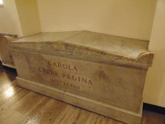 Das nebenstehende Foto zeigt das Grab von Charlotte von Zypern (1444 - 1487); sie war von 1458 bis 1463 Königin von Zypern. Carlotta von Lusignan war die Tochter von Johann II., König von Zypern, und Helena Palaiologa. Ihre Mutter Helena (1428 – 1458) war eine byzantinische Prinzessin aus der Familie Palaiologos, die durch ihre Heirat mit König Johannes II. von Zypern und Armenien Königin von Zypern und Armenien, Titularkönigin von Jerusalem und Prinzessin von Antiochia wurde. Im Alter von 14 Jahren wurde sie mit dem Tod ihres Vaters Königin von Zypern. 1485 trat sie die Ansprüche auf Zypern an Karl von Savoyen ab. Charlotte von Zypern wurde im Petersdom in den Vatikanischen Grotten begraben.