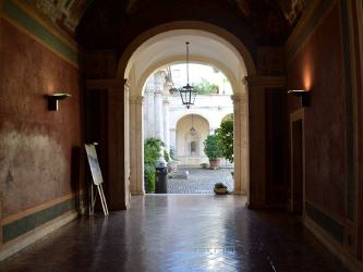 Das Gewölbe der Kapelle zeigt ein Fresko der Krönung der Jungfrau Maria. Die Wohnung ist außerdem über Türen mit Pirro Ligorios klassischer Gran Loggia an der Gartenfassade des Hauses verbunden, die auf der darunterliegenden Terrasse basiert und in Form eines großen Triumphbogens gestaltet ist.