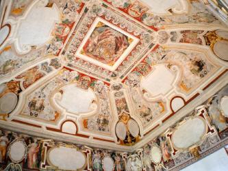Das Foto aus der Wikimedia Commons "...der Salon des Kardinals ist mit 16 Fresken dekoriert - in der Ecke ist das Wappen der Familie des Kardinals zu sehen - Autor: Danielhbordeleau" ist lizenziert unter der Creative-Commons-Lizenz „Namensnennung – Weitergabe unter gleichen Bedingungen 4.0 international“.