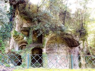 Areal der Villa Barberini - Blick auf das Theater der Domitianvilla (Antiker Stuckdekor im Theater) in den Päpstlichen Gärten von Castel Gandolfo - eingebunden über Wikimedia Commons