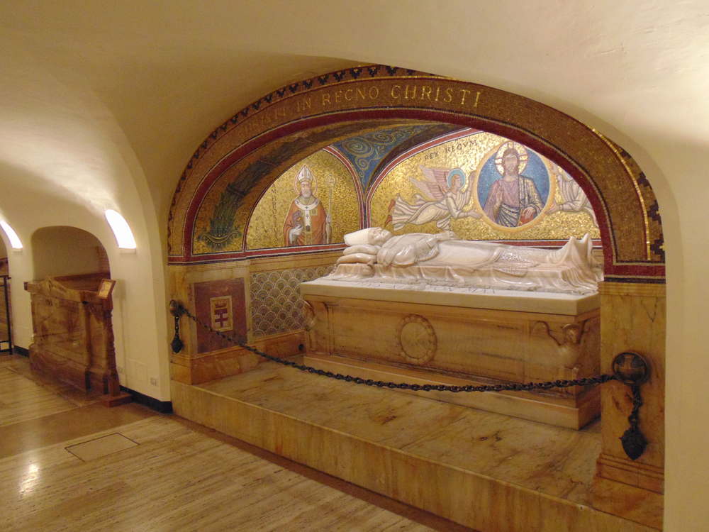 Auch der deutsche Kaiser Otto II. (955 - 983) wurde hier beigesetzt. Sie alle fanden ihre letzte Ruhestätte in der Nähe des vermuteten Apostel-Grabes von Petrus. Hier befindet sich u.a. auch das Grab von Pius XI. (1922 - 1939), Unterzeichner der Lateranverträge von 1929, in einer mit goldenen Mosaiken ausgekleideten Nische.