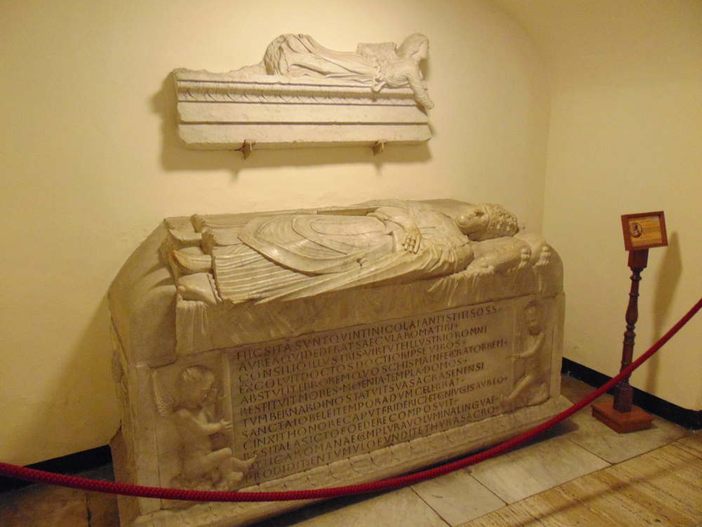 In den Vatikanischen Grotten ist auch der Papst Bonifatius VIII. (1235 - 1303) bestattet. Das Grabmal von Bonifatius VIII. wurde von Arnolfo di Cambio gestaltet. Bonifatius VIII. wurde 1235 in Anagni (Latium) geboren als Benedetto Caetani. Er war Papst von 1294 bis 1303. Bonifatius VIII. führte das Jubeljahr ein. Er war mütterlicherseits der Neffe Papst Alexanders IV. (1199 - 1261), der ihn 1260 zum Kanonikus an der Kathedrale von Todi ernannte. 1281 wurde er Kardinaldiakon mit der Titelkirche San Nicola, 1291 von Papst Nikolaus IV. zum Kardinalpriester der Titelkirche Santi Silvestro e Martino ai Monti befördert und schließlich 1294 maßgeblicher Berater des nach langem Konklave gewählten Mönch-Papstes Coelestin V. (1209 - 1296). Nach dem Rücktritt von Coelestin V. wurde nach einem kurzen Konklave am 24. Dezember 1294 Benedetto Caetani als neuer Papst gewählt. Er verlegte den Papstsitz von Neapel zurück nach Rom und wurde am 23. Januar 1295 in der Petersbasilika gekrönt.